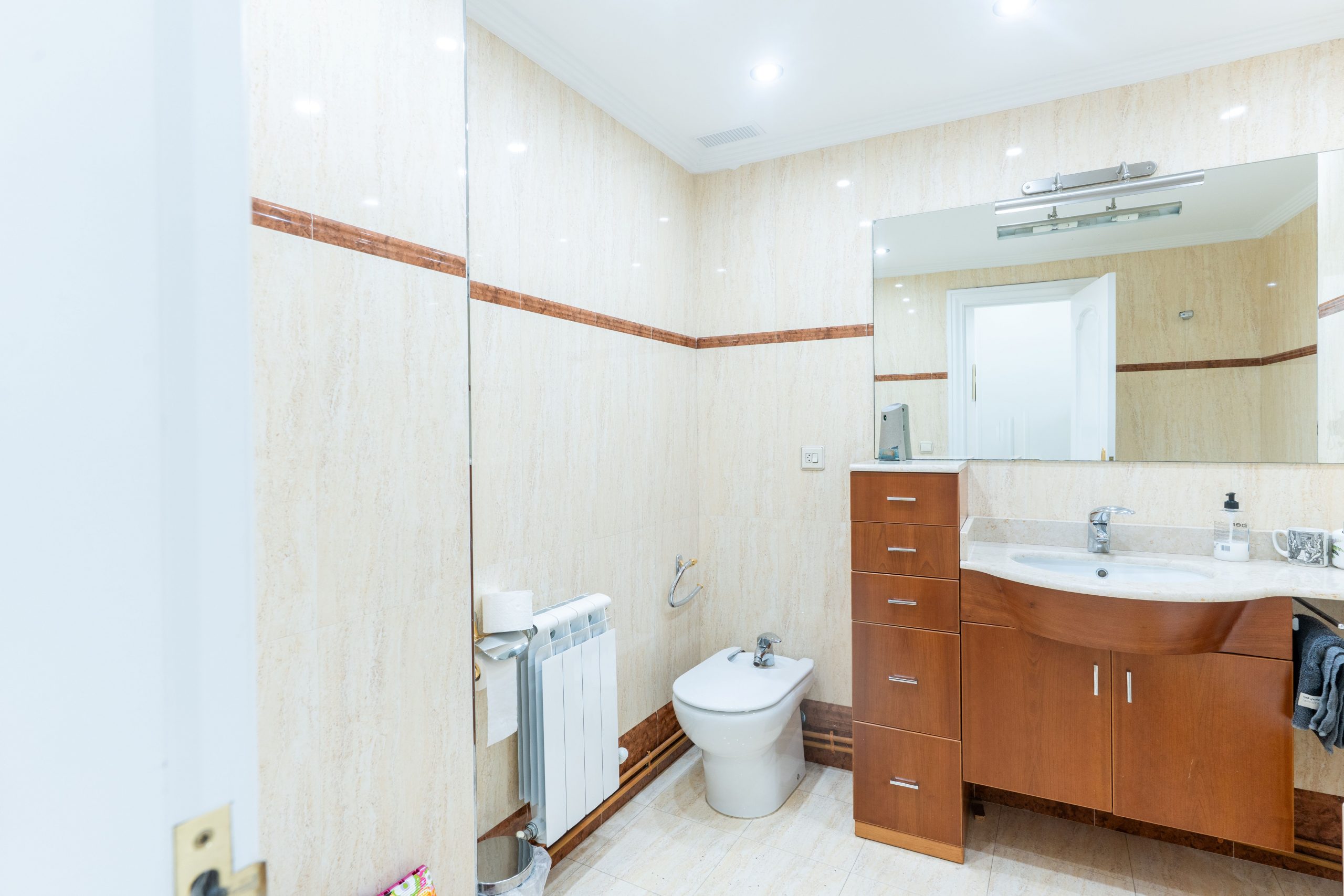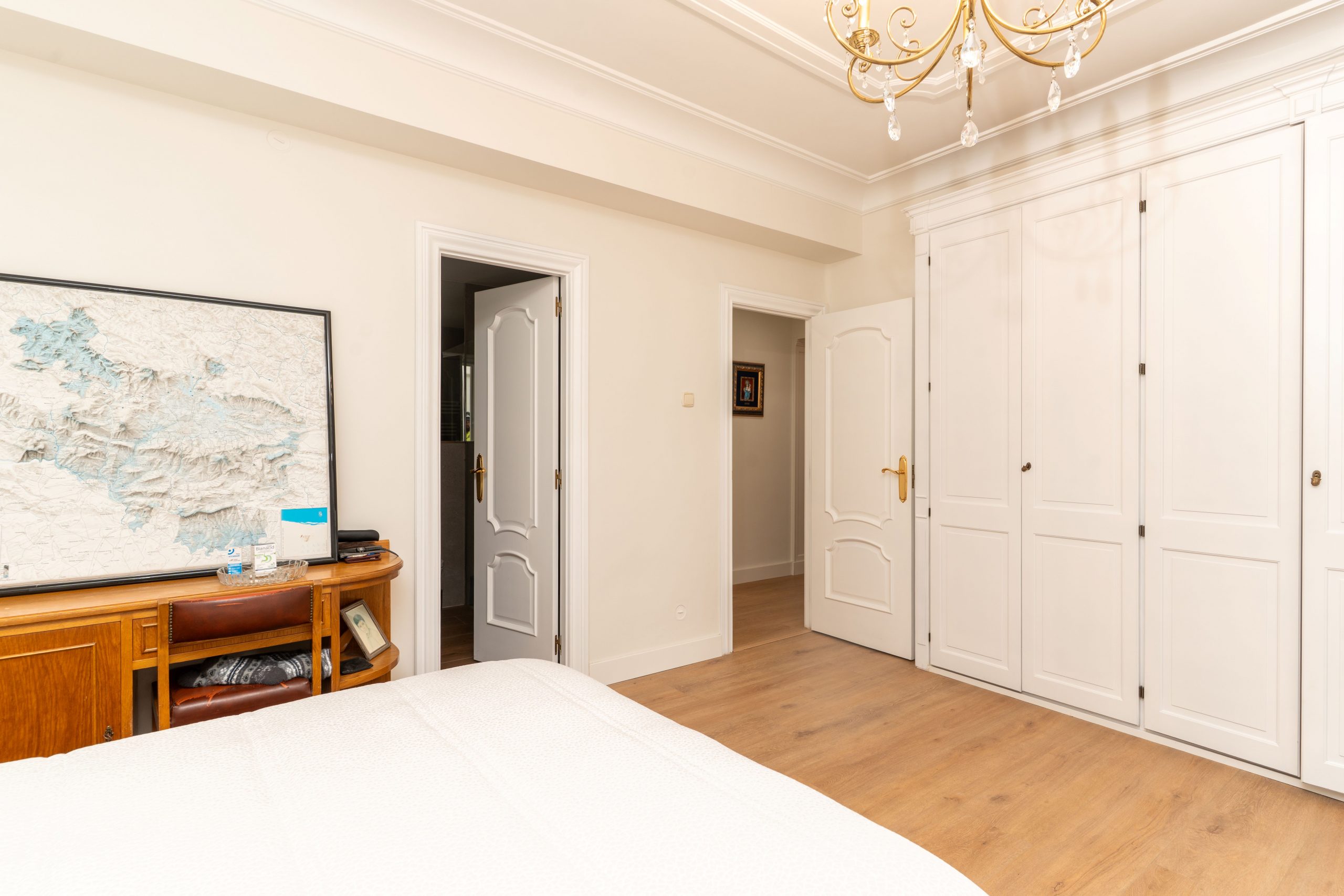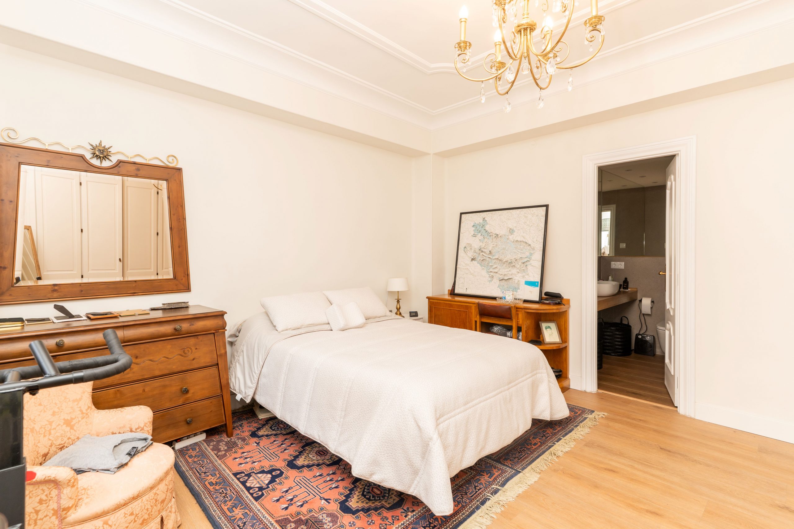 El dormitorio principal incluye un amplio armario empotrado, y la calefacción individual de gas natural garantiza el confort durante todo el año.